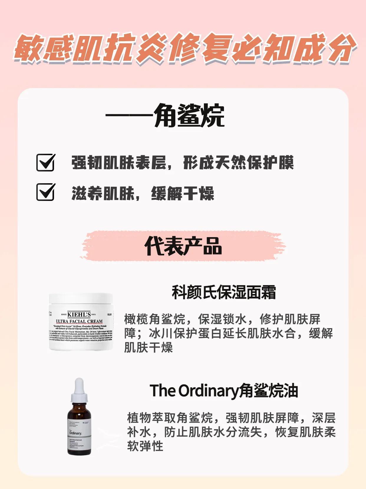 ◾️代表产品:科颜氏保湿面霜 The Ordinary角鲨烷油