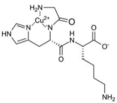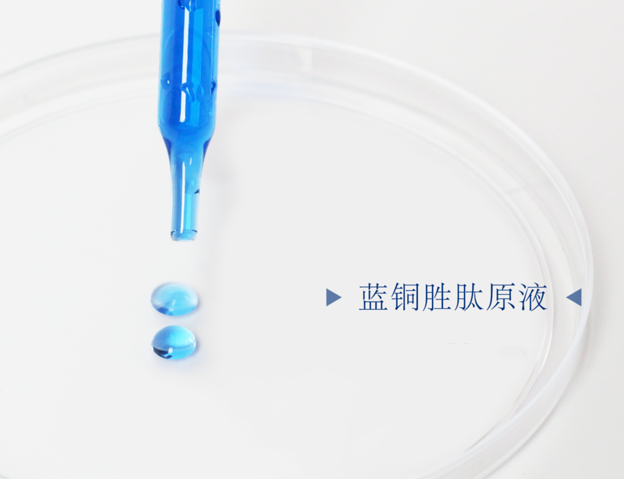 为啥要叫它“蓝铜胜肽呢”?因为它由铜离子和三肽-1构成的化合物,当它和水溶液结合时,便呈现出这抹神秘的蓝色,所以大家习惯叫它为蓝铜胜肽(GHK-CU),成分表里也叫三肽-1 铜。