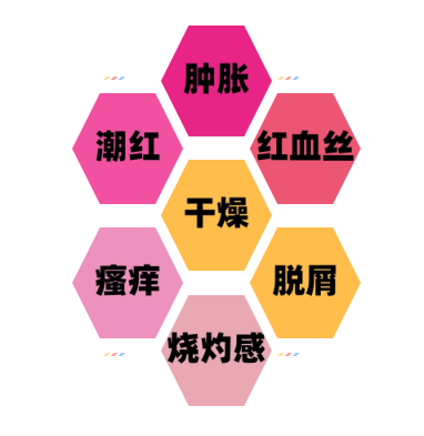 如果你的皮肤出现了以下几个症状,比如说 瘙痒、烧灼感、潮红、肿胀、干燥、脱屑、以及皮肤的油脂溢出和红血丝 等等,就说明你的皮肤屏障已经出现了问题。