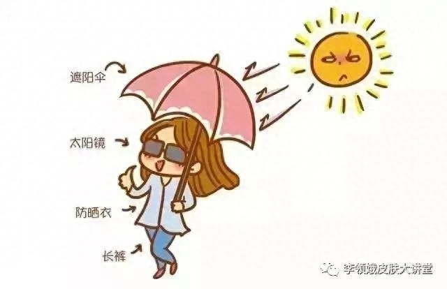 紫外线可加重敏感性皮肤的皮损,应根据季节、环境选择相应的防晒霜,且同时要预防UVB和UVA。