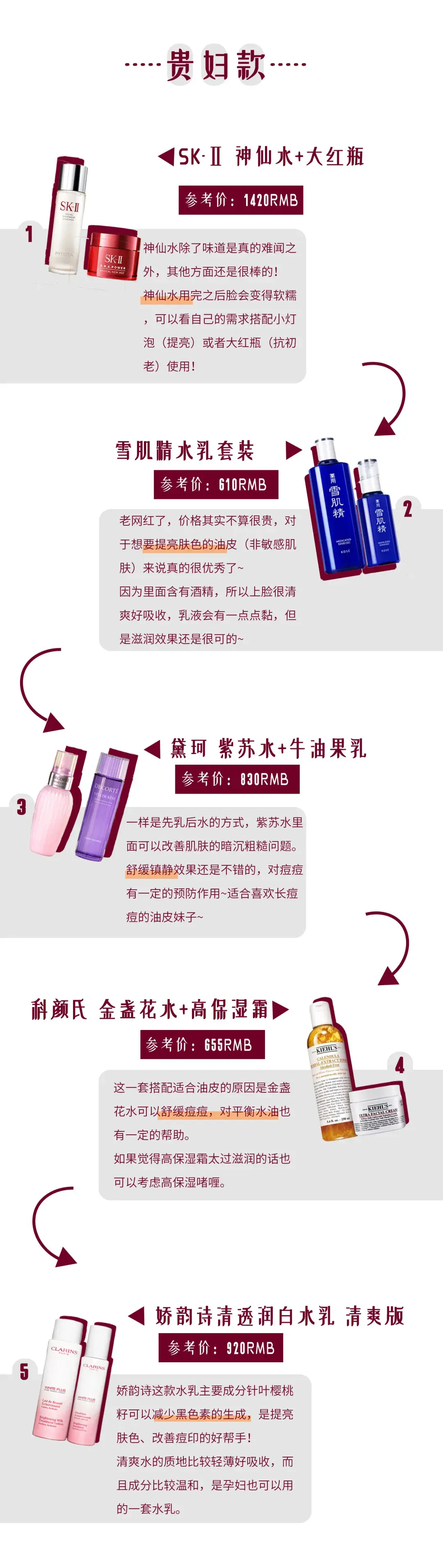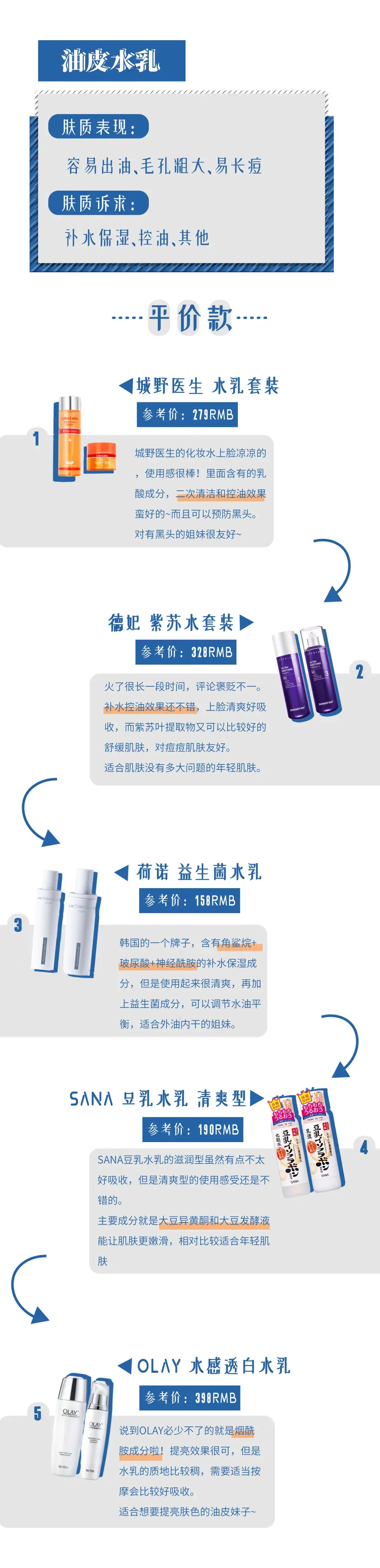 此次的水乳合集从不同的肤质出发,分为平价和贵妇款来写,大家可以根据下面的清单列表来选择自己想要看的内容哦~