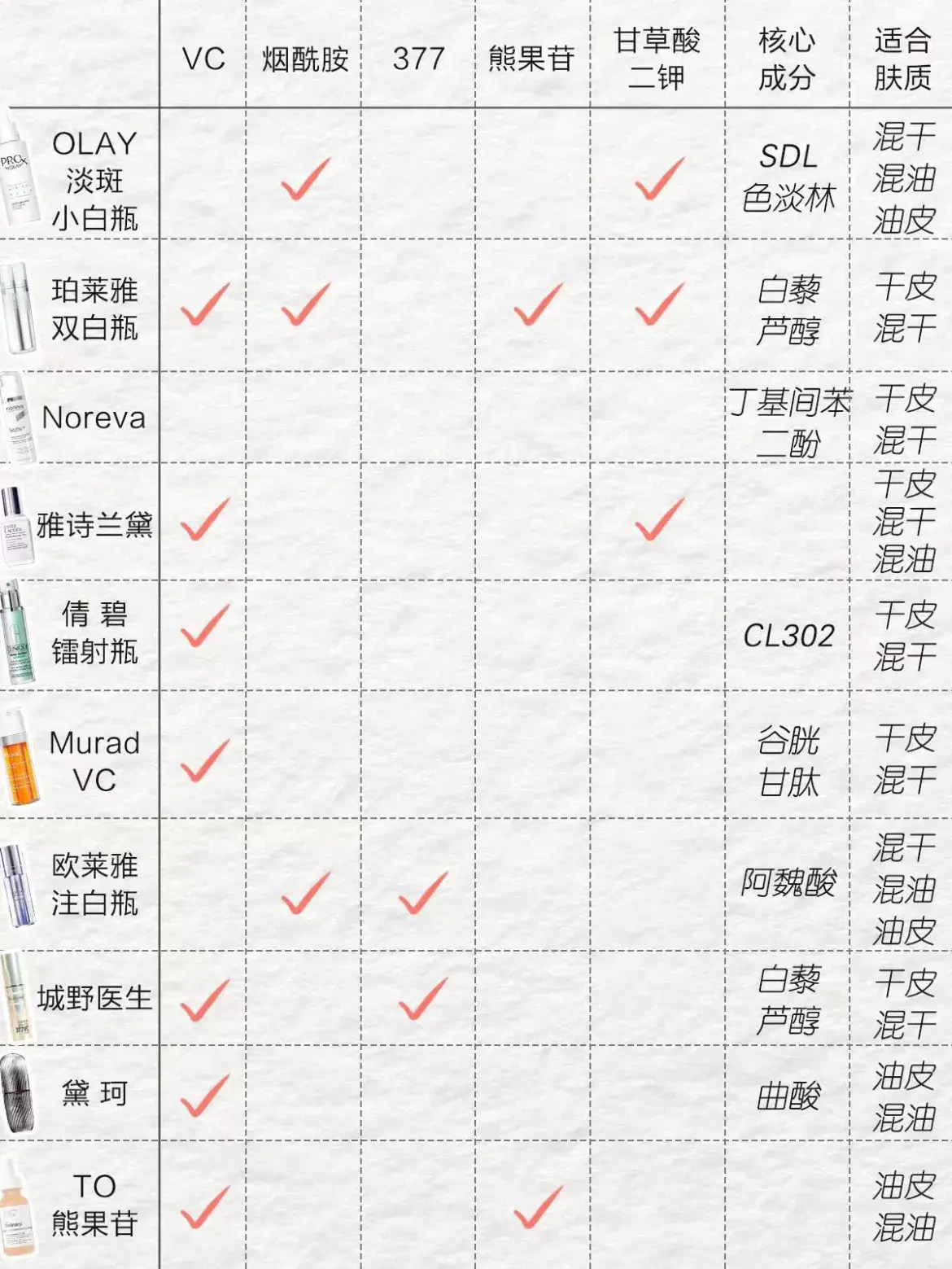 本期全是干货,咱们日常在选用护肤品的时候要学会看它里面的成分,这样才能对照选择自己适合的产品,而不被一些表面文案忽悠,本期给大家科普下几种常见的美白成分: