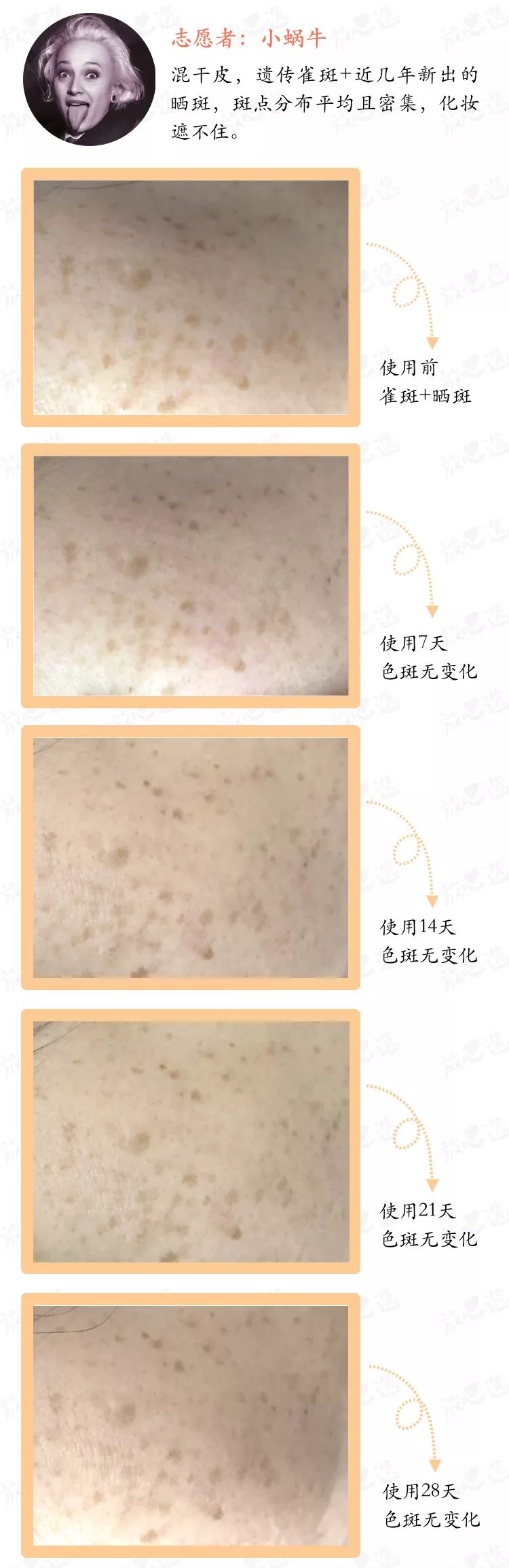 到底能不能祛斑?李漂亮找了2位志愿者小姐姐上脸亲试!不改变原护肤步骤及生活习惯,每天早晚各使用一次,坚持至少14天