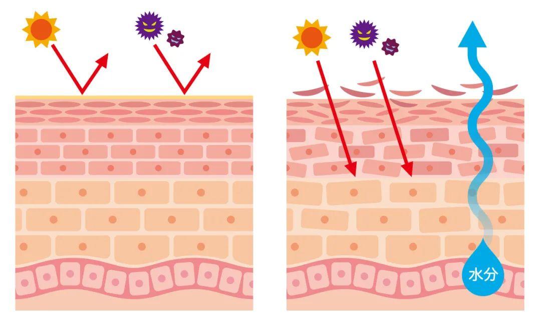 健康的皮肤屏障(左)和受损的皮肤屏障(右) | 图虫