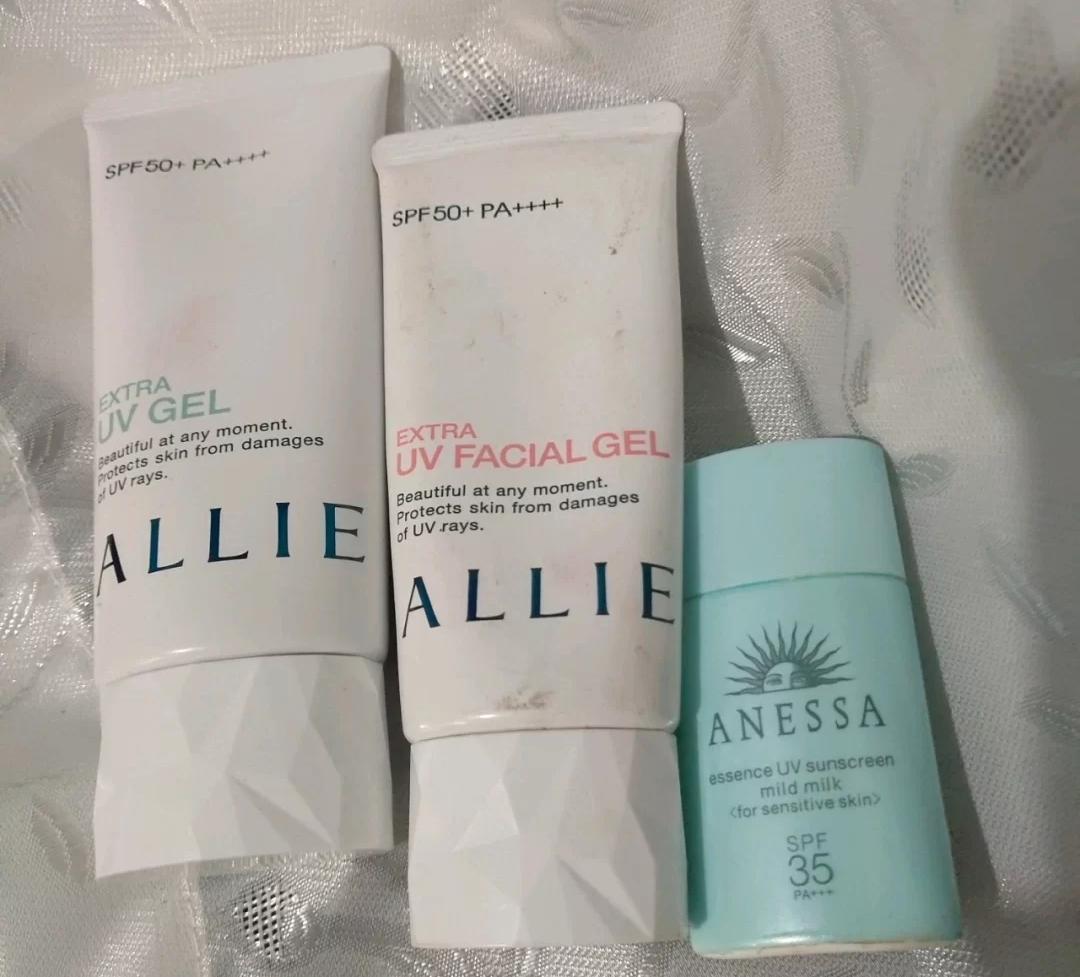 还有一直受广大美妆博主喜爱自用的嘉娜宝防晒霜,他是有两种,粉瓶和蓝色。主要用在脸上的是粉瓶,蓝色用在身上更好。粉瓶是有一丟丢厚重的霜的质地,神奇的是涂厚点也很快就能成膜、很快就能变干爽。后续叠加粉底液也完全不会搓泥属于控油的那种。