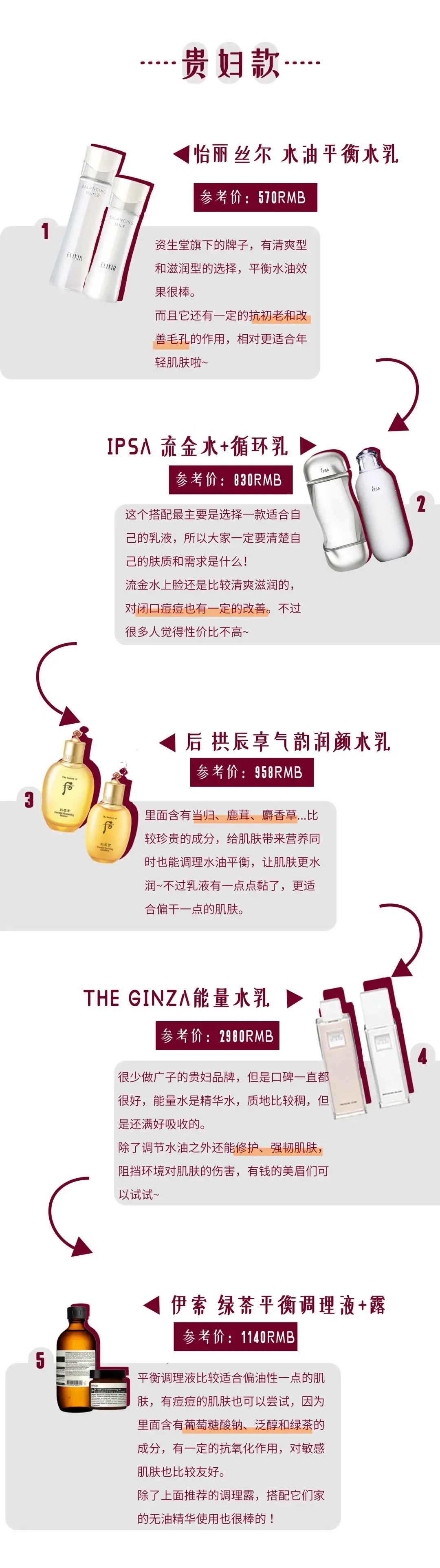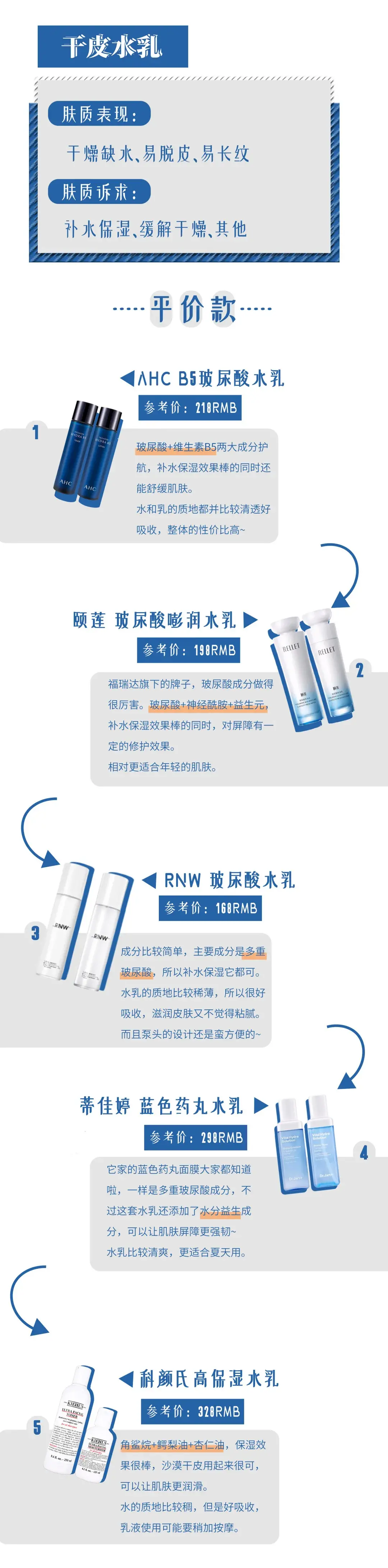 此次的水乳合集从不同的肤质出发,分为平价和贵妇款来写,大家可以根据下面的清单列表来选择自己想要看的内容哦~