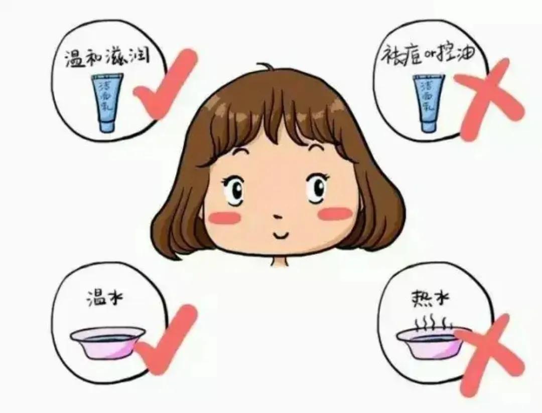 正确的做法呢是使用温水洗脸,油皮的用洗面奶早晚各洗一次,而干性的只需要在每天晚上的时候用洗面奶清洁一下。早上起床用清水洗脸就可以了。